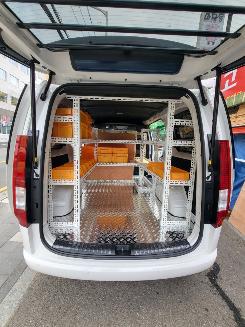 스타리아 반 앵글 선반 설치, 오늘 출고된 차량인데 선반 설치가 가능하냐는 전화를 받았습니다. 우선 방문 가능한 시간을 여쭤보니 자영업을 하시는 분이라 오늘만 시간이 날 것 같아 다른 작업시간을 조정하는 시간을 정했습니다.
