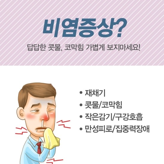 잘 모르시는 분들은 그냥 코감기인 줄 알고 감기약을 복용하거나 그냥 시간이 지나면 낫겠지 하면서 방치하게 되곤 하는데이런 상황이 계속되다 보면 증상이 점점 더 심각해지고 있으며, 만성에 축농증까지 이어지기 때문에 초기에 어떻게 대처하느냐가 중요하다고 할 수 있습니다.