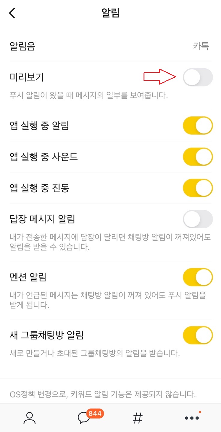 눌러보면아까와비슷하지만대화방설정이라고적어있는것으로보니까개별방변경이라는것을알수있습니다.