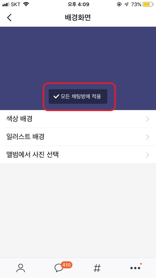 카카오톡 배경을 바꾸는 주제를 선택한 배경 화면을 적용하다