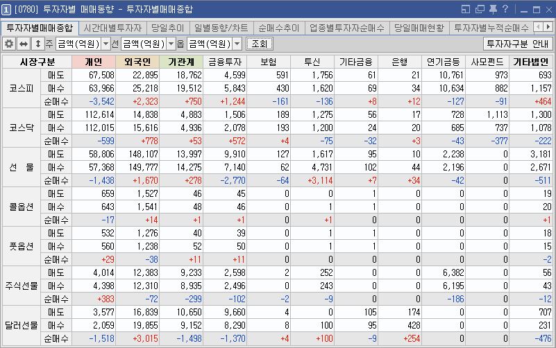 ▲투자자별 매매동향=금요일에는 장기적으로 외국인투자자와 기관의 수급이 압박되면서 국내 증시가 상승세로 마감했다.어젯밤 미국 증시도 반등했고 인플레 우려에 대한 내성이 점점 축적된 덕분인지!