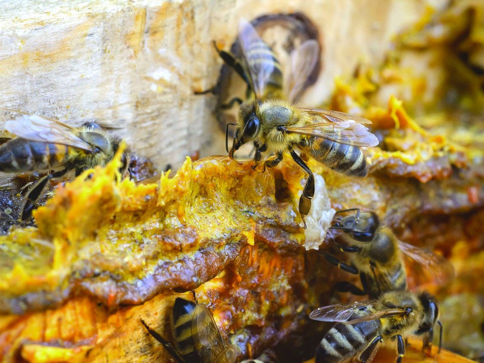 프로폴리스를 집 입구에 발라 달걀을 보호하는 벌