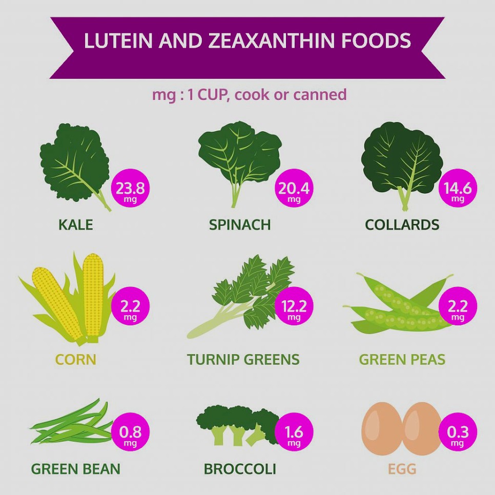 [라이코펜 베타카로틴 제아잔틴]라이코펜은 토마토·수박 등 붉은 빛이 도는 야채에 많기 때문에 완숙되고 붉은 빛이 도는 것을 선택하도록 합니다. 베타카로틴은 체내에서 비타민A로 변하며 주로 녹황색 채소 – 당근, 호박, 케일, 바나나 등에 많습니다. “제아잔틴은 망막의 주요 성분이기도 하지만, 녹색을 띤 야채, 케일, 머스타드, 옥수수 등에 풍부합니다”