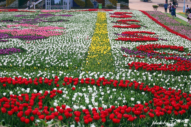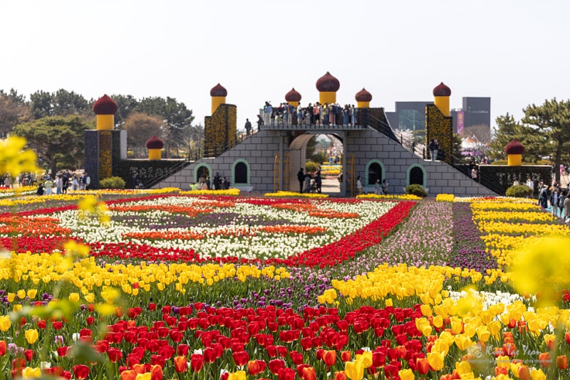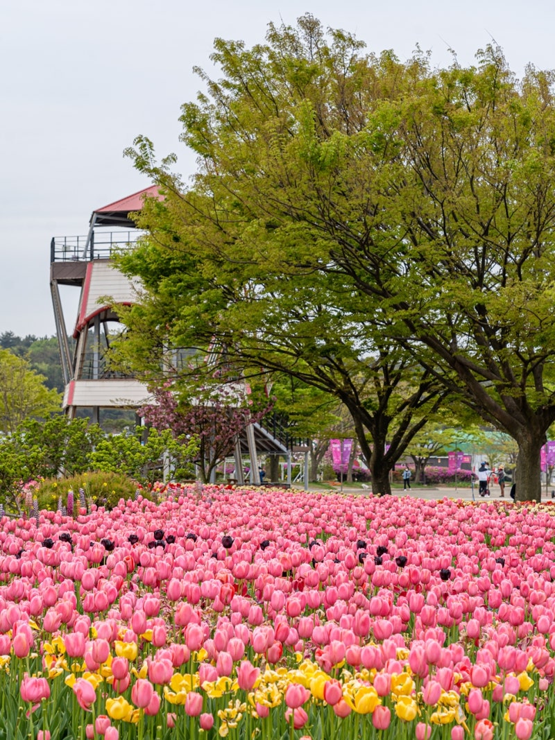 거대 튤립밭 튤립축제답게 행사장 곳곳에 거대한 튤립밭을 볼 수 있었습니다. 다양한 색상의 튤립으로 사진 찍기 좋은 꽃 융단이 만들어져 있던 것이 정말 신기했습니다.드론 촬영을 하면 딱 좋다고 생각했는데 다행히 높은 곳에서 볼 수 있도록 전망대도 설치되어 있었습니다.