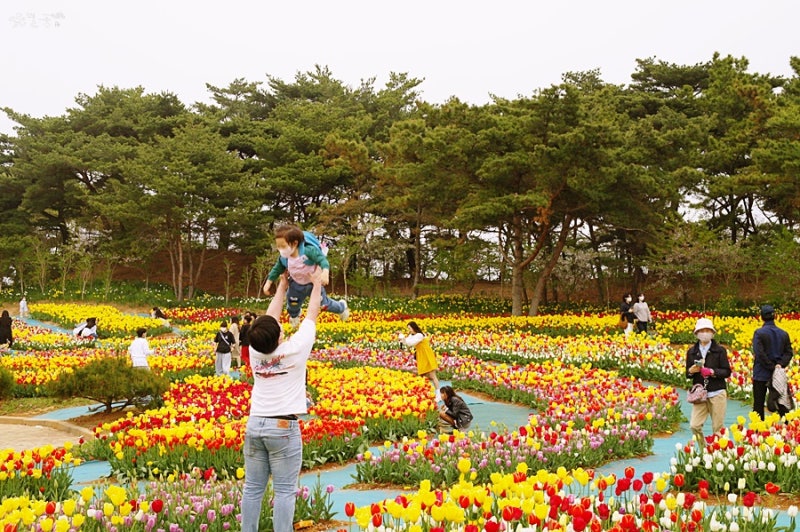 얼마 전 다녀온 충남 안면도 세계 튤립축제. 워낙 유명한 축제라 기대하고 갔는데 날씨가 흐려서 그런지 주차장부터 분위기가 너무 한산하더라구요.이거 그냥 가야 하나 싶었는데 깜짝 무료 입장 이벤트를 한다는 방송이 나오는 거죠? 그럼 아니 들어갈 수는 없어요.다운된 분위기를 진정시키고 카메라 삼각대를 들고 회장 안으로 당당하게 입장했습니다.