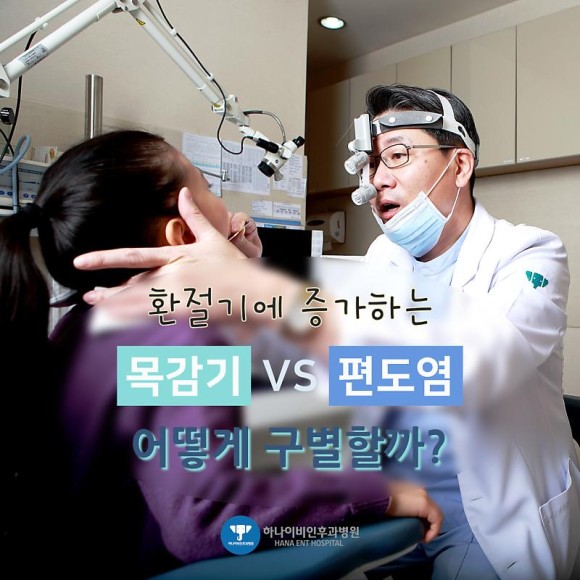 진료를 받으면 편도선염이라고 합니다. ㅜㅜ 진료 보면서 너무 울어서 목감기와 편도선염이 무엇이 다른지 여쭤볼 수 없어서 검색한 내용을 첨부드립니다. [BY하나이비인후과병원] 환절기, 특히 겨울에서 봄으로 넘어가는 환절기에는 감기 환자가 급증합니다.naver.me