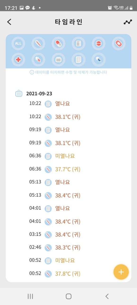 어제 저녁에 목 언저리가 뜨거워지는 게 뭔가 이상해서 9시가 넘어서 뭔가 개운하지가 않아. 해열제 찾아보니 유통기한만 지났을 뿐 행운이 유치원 친구 집에 가서 비상용 챙겨왔는데 어떻게 슬픈 예감은 틀릴 수 있을까.37.8도에서 시작해 38.5도까지 밤새 오르락내리락. ( ´ ; ω ; ` )
