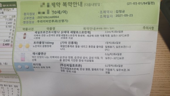 세실 프로 건조 시럽은 인후염, 편도염, 중이염 치료에도 사용하는 약이네요. 행운이 중이염일 때는 버넌 건조 시럽을 복용했는데 소원이는 처방이 달라지네요. 제발 약 잘 챙겨먹고 빨리 나았으면 좋겠네요.