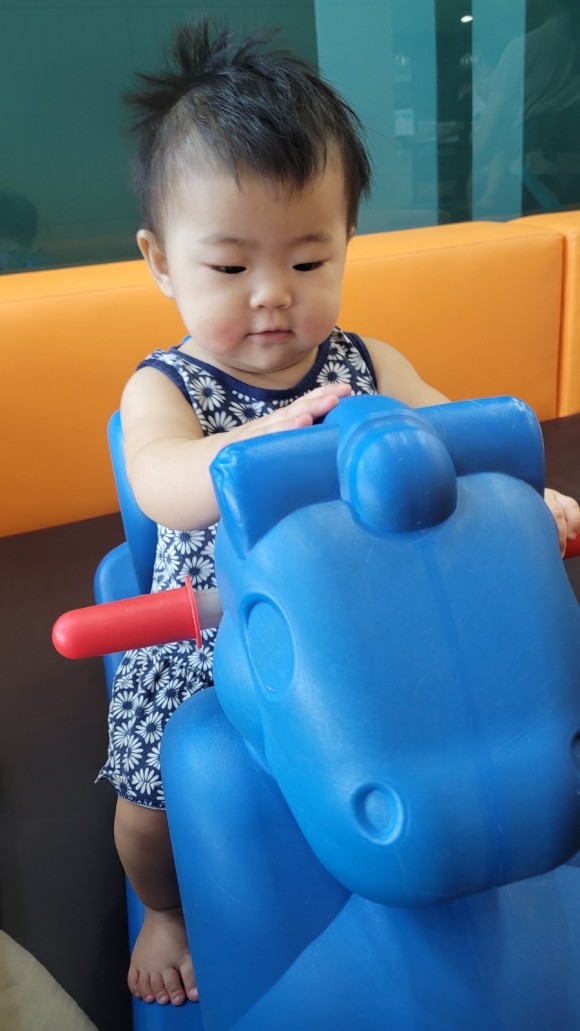 “아침이 돼도 열이 안 내려서 병원에 가야 하나 고민하다가 일단 출발해 보니 다행히 병원에 갔을 때는 열이 내리더군요. 환절기라 신석기선 진료 대기도 많았지만, 백신 접종을 하는 사람도 많아 사람이 많았습니다. 어린이집에서 말을 타고 놀면서 진료시간을 기다려요. 잠도 제대로 못 자고 약을 먹으면서 전에 먹은 것도 다 토했더니 몸이 상한 소원은 놀다 울다를 반복했습니다.