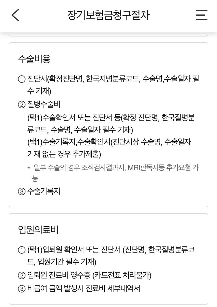 오는 11월 5일 보험사 앱을 통해 필요 서류를 일일이 찍어 청구 신청을 한다. 생각보다 너무 쉬운데 귀찮았어. 너무 찍을게 많아서.. 필요서류는 내가 가입한 보험사 홈페이지에 들어가면 나온다, 나는 전화로 들었는데 문자로 발송해줬다! (진단서, 상세내용서, 영수증 등) * 보험사마다 차이가 있을 수 있으니 직접 확인해주세요! 그리고 병원영수증 꼭 미리 챙겨갈 것!! 수술 후 수술 전 진료받은 것은 병원에서 따로 영수증을 준비해주지 않으니 수납시 날짜를 말하면 준비해준다! 꼭 그때그때 받아두세요!(나 하나 잊어버렸으니까 TT) 나중에 가기 귀찮아요.~아직 심사중이라 보험료가 들어오면 다시 리뷰할게요!