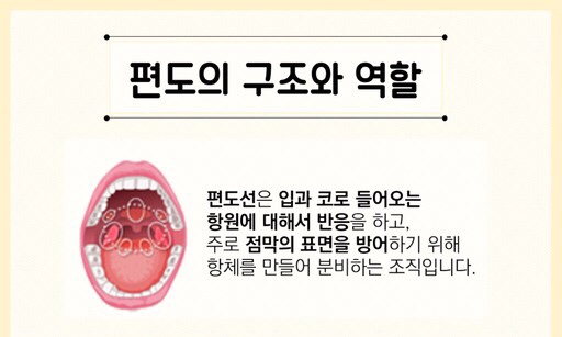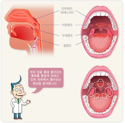 편도선은 외부에서 들어오는 세균이나 바이러스를 막아주는 역할을 해요!