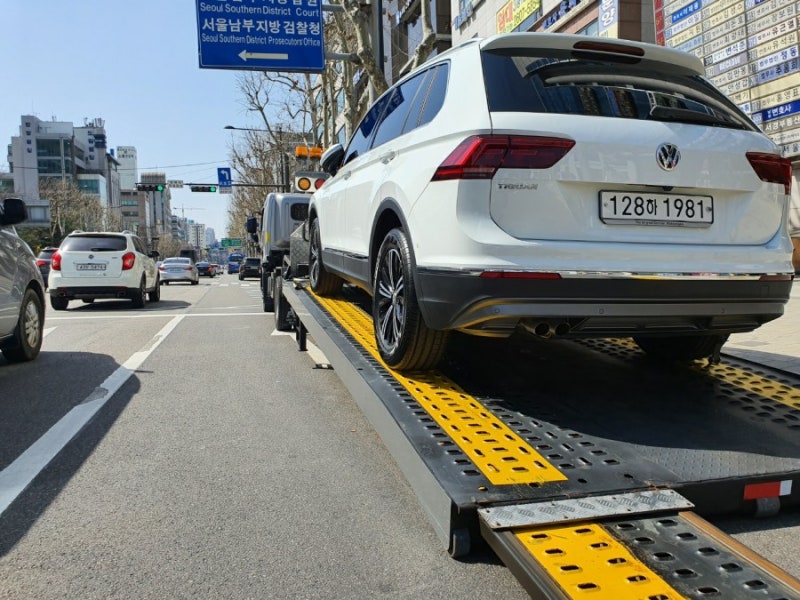 폭스바겐 티구안 신차출고차량 신차탁송 전주시 덕진구 장동에서 부산시 금정구 금곡동까지 부산캐리어탁송 카캐리어 어부바 단독캐리어 저상셀프카 꼼꼼하고 안전한 프리미엄 수입차탁송
