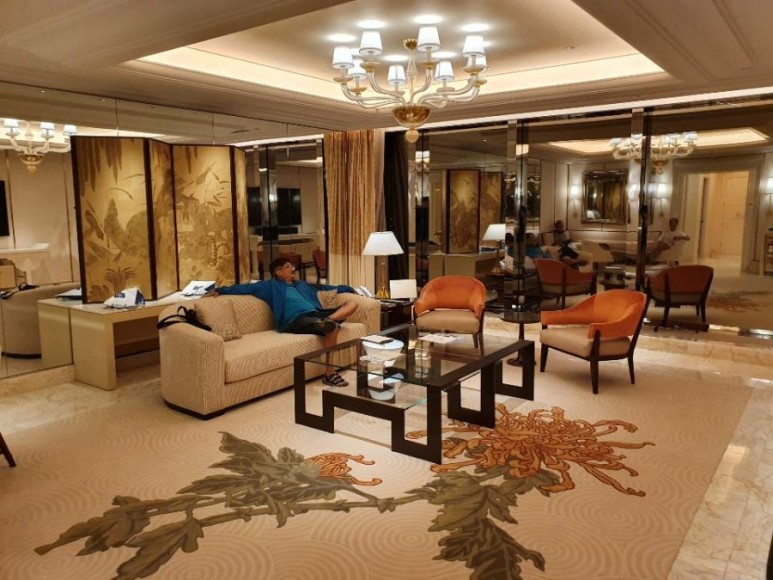 역시 카지노 측에서 제공한 스위트룸 거실의 크기는 꽤 컸습니다.