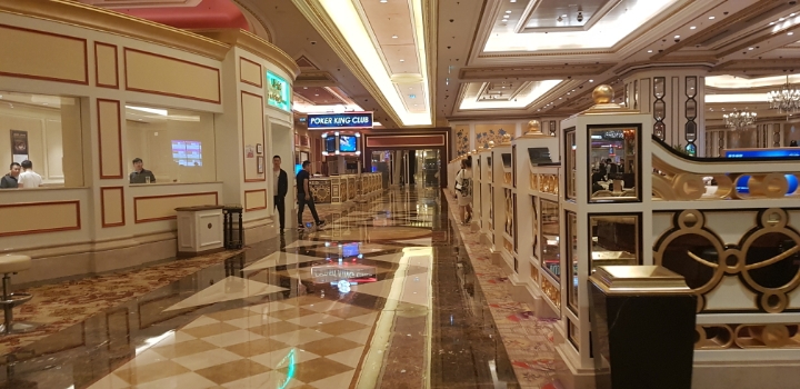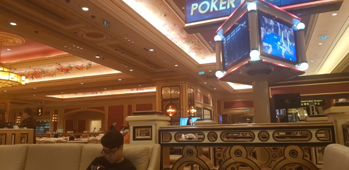 베네시안 포커룸 가면 블라인드 50-100이 세 개의 테이블이 돌아갑니다