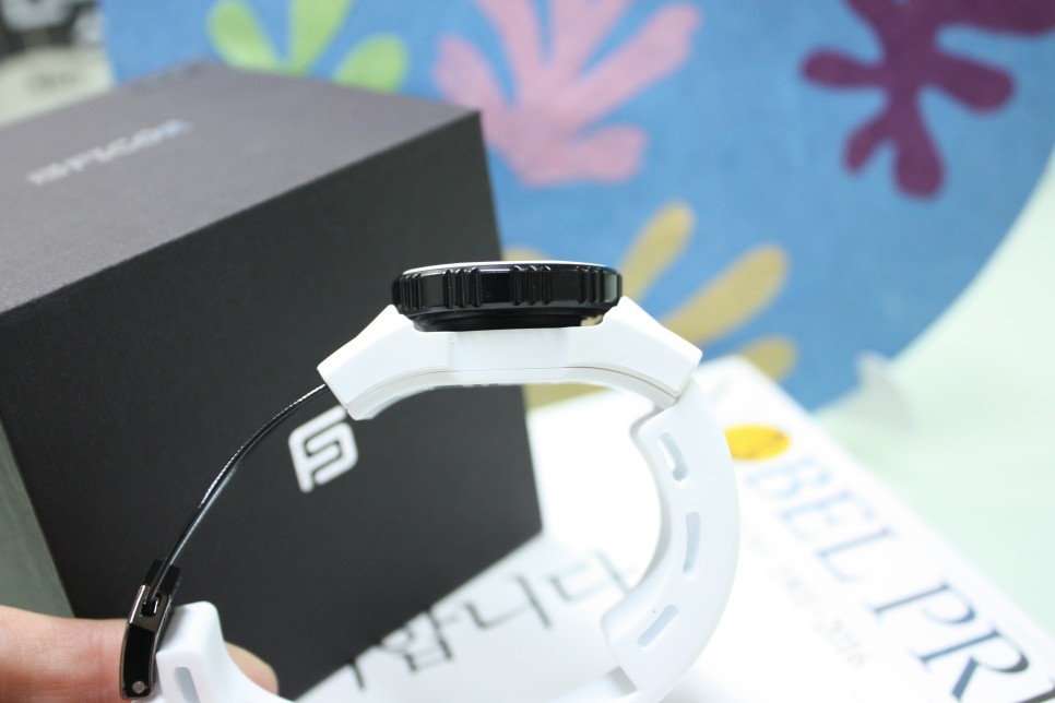 음.. 일반 시계와는 다른게 발견됐습니다 일단 바늘이 있는 쪽은 둥근 다이얼이 들어있고 밴드는 양쪽을 압박할 수 있는 형태로 되어있네요 이게 좀 중요한 부분인 것 같네요. 양쪽을 꽉 조여 조이는 역할을 하는 것처럼 보이죠. 손에 끼고 있으니까 스타일이 좋은 것 같네요.