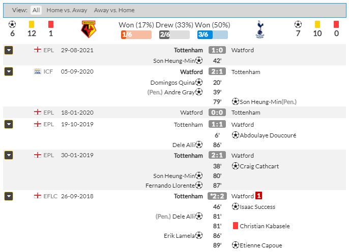 토트넘 왓퍼드 전적 경기 결과