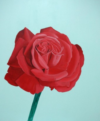 침대 커버 위에 빨간 장미꽃이 한 송이 있는 꿈