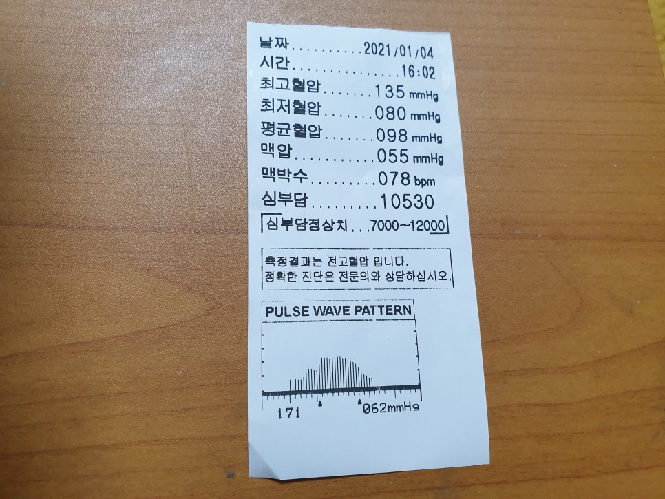 집으로 돌아오는 길에 건강검진을 받았던 병원에 들러 다시 혈압을 체크해 봤다.