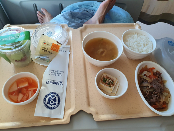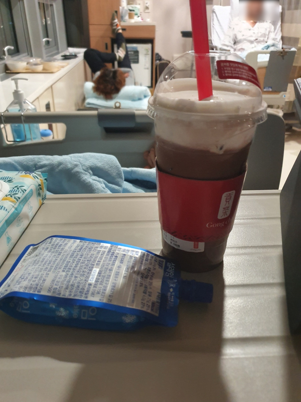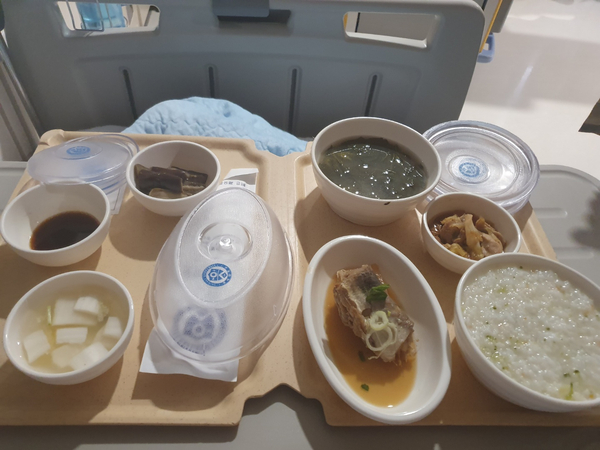 눈을 뜨자마자 식사를 한 내 병실에는 나 말고도 수술을 받은 분이나 함께 수술을 한 환자가 있는데 대부분의 환자는 식사를 하지 못하고 미음을 삼켰다. 재미있는 것은 나는 수술이 끝나고 병실에 와서 5분만에 바로 일반식을 했다.