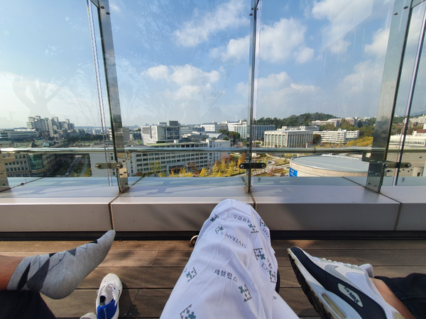 창가 자리로 결정되길 잘했어. 풍경이 예쁘고