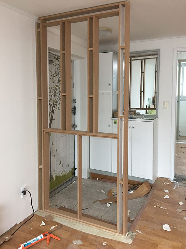 공간이 분리된 사무실 안쪽에서 바라본 모습입니다.공간이 분리된 사무실 안쪽에서 바라본 모습입니다.공간이 분리된 사무실 안쪽에서 바라본 모습입니다.공간이 분리된 사무실 안쪽에서 바라본 모습입니다.다음 현장은 아파트 알파룸 공간에 설치된 가벽과 문입니다.거실 옆 알파룸 공간에서 거실을 넓게 사용한 곳으로 가짜 벽과 문으로 새로운 방을 만든 곳입니다.시공 전의 모습입니다.거실 옆 공간에서 아래 사진을 보면 처음 아파트 분양 당시 옵션으로 방을 쓸지 아니면 거실을 넓게 쓸지 선택할 때 이곳은 방으로 선택하지 않은 곳입니다.그래서 거실을 넓게 쓰던 곳이에요.아래 표시된 부분에 거실과 구분되는 가벽을 설치하고 방문이 설치되도록 벽이 있기 때문에 좌측 기존 벽 부분에 개폐문이 설치됩니다.가벽은 위쪽에 유리가 장착되고 아래쪽에 난판이 장착되는 파티션 스타일로 시공됩니다.먼저 가벽 골조 작업입니다.위아래가 갈라져요.입구는 좁기 때문에 1조 여닫이 문이 시공됩니다.상부 미스트 유리 하부 난판이 있는 파티션 가벽입니다.첫 번째 사무실 가벽 시공 현장과 비슷한 스타일로 시공되었습니다.여기는 천장이 계단 모양으로 되어 있어요.상부 마감은 천장 몰딩이 그대로 마무리됩니다.가벽을 설치하면 입구가 만들어집니다.입구에는 다른 기존 방들처럼 한 쌍의 개폐문이 시공됩니다.테두리는 실리콘 마감입니다.(실리콘마감전 모습입니다)여닫이문의 도어 시공 후 모습입니다.가벽과 색이 다른 여닫이문이 설치되어 있습니다.문과 가벽이 설치되어 방이 만들어진 장소, 안쪽에서 바라본 방문의 모습입니다.평평하지 않은 천장 형태로 가벽 상부를 마감했습니다.고객이 가벽을 설치하는데 별로 답답하지 않은 가벽을 원했어요.그래서 중문 시공도 생각해 본 것 같아요~거실 옆 알파룸 공간에 3구 파티션 가벽과 1대 개폐문으로 새로운 방을 만든 곳입니다.알파룸의 위치는 아파트별로 전부~다른 곳에 다른 크기입니다.알파룸 인테리어의 시작은?거실과 근접해 있는 아파트 알파룸 공간입니다. 알파룸 공간을 거실과 분리하려면 일단 벽과 문이…blog.naver.com알파룸 인테리어의 시작은?거실과 근접해 있는 아파트 알파룸 공간입니다. 알파룸 공간을 거실과 분리하려면 일단 벽과 문이…blog.naver.com알파룸 인테리어의 시작은?거실과 근접해 있는 아파트 알파룸 공간입니다. 알파룸 공간을 거실과 분리하려면 일단 벽과 문이…blog.naver.com