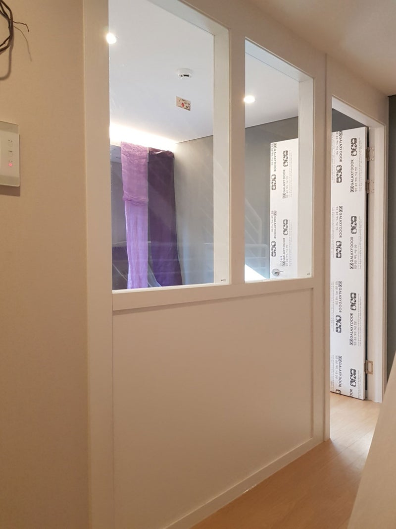 오늘 시공 포스팅은 가벽과 문을 설치한 곳입니다.가벽 상부에 유리가 장착되어 있습니다.파티션 스타일의 가벽입니다.그런데 가벽의 길이가 길기 때문에 1장의 유리가 아닌 3장의 유리가 장착되어 있습니다.가벽 공간을 3개로 나누어 상부에는 유리가, 하부에는 난판이 장착된 가벽입니다.우리는 보통 이런 스타일을 파티션이라고 부릅니다.그리고 공간 분리 및 방을 만들기 위해 이 가벽과 문이 설치된 곳입니다.하나는 아파트 현장이고 다른 하나는 사무실이에요. 3구 파티션의 가벽과 미닫이문 시공 아파트, 사무실에 설치되었습니다.