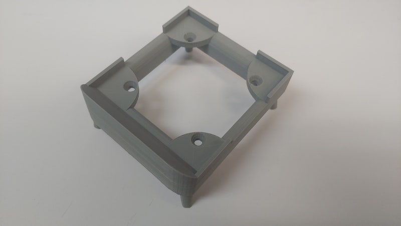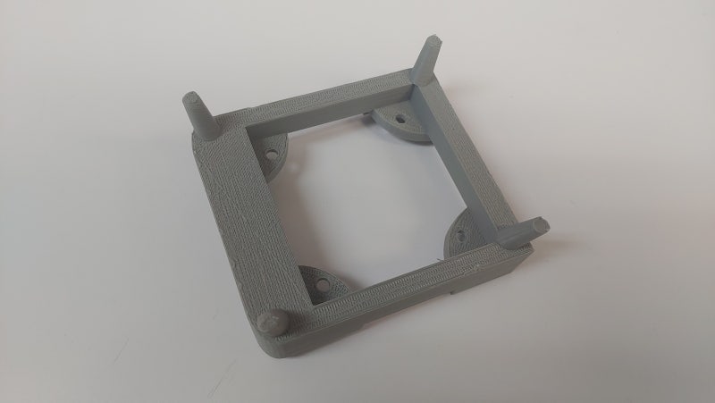 위와 같이 아래에는 네 개의 다리가 있고 가운데에는 열려 있는 형태를 하고 있습니다. Tronxy X5S를 이용하여 출력하고 도중에 설계 오류로 다시 출력하였습니다.