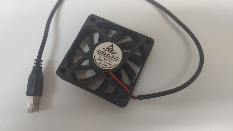 쿨러는 60mm의 5V USB 전원입니다. 핸드폰 충전기나 멀티 충전기를 이용할 예정이었기 때문에 5V로 USB 타입으로 구입했습니다. 일반 쿨러는 별도 전원 작업을 하셔야 하는데,