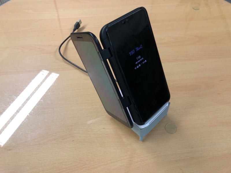 V50을 사용하면서 듀얼 스크린을 장착한 상태에서 무선 충전을 하려고 여러 가지 시도를 했습니다. 스크린을 닫으면 화면이 안 보이고 스크린을 뒤로 넘겨버리면 무선충전 거리 때문에 안 돼요. 그래서 반만 열린 상태에서 충전하는 방법을 찾던 중 위와 같이 무선충전기 거치대+쿨러를 만들게 되었습니다. 3D 프린터를 매일 사용하는 것은 아니지만 이렇게 필요할 때면 정말 도움이 됩니다.