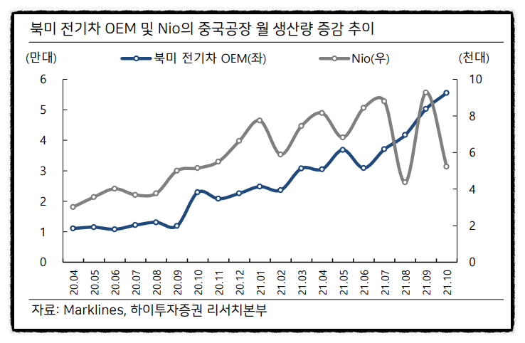 ▷ 증권사 보고서 투자포인트 개요-단기 모멘텀-1) HM 글로벌 출하물량 회복2) GM 다수 공장 가동 재배포, 드니오 물량 증가3) BEV 판매 성수기-북미 자동차 생산 증가 및 중국 EV 스타트 업향 물량 증가)