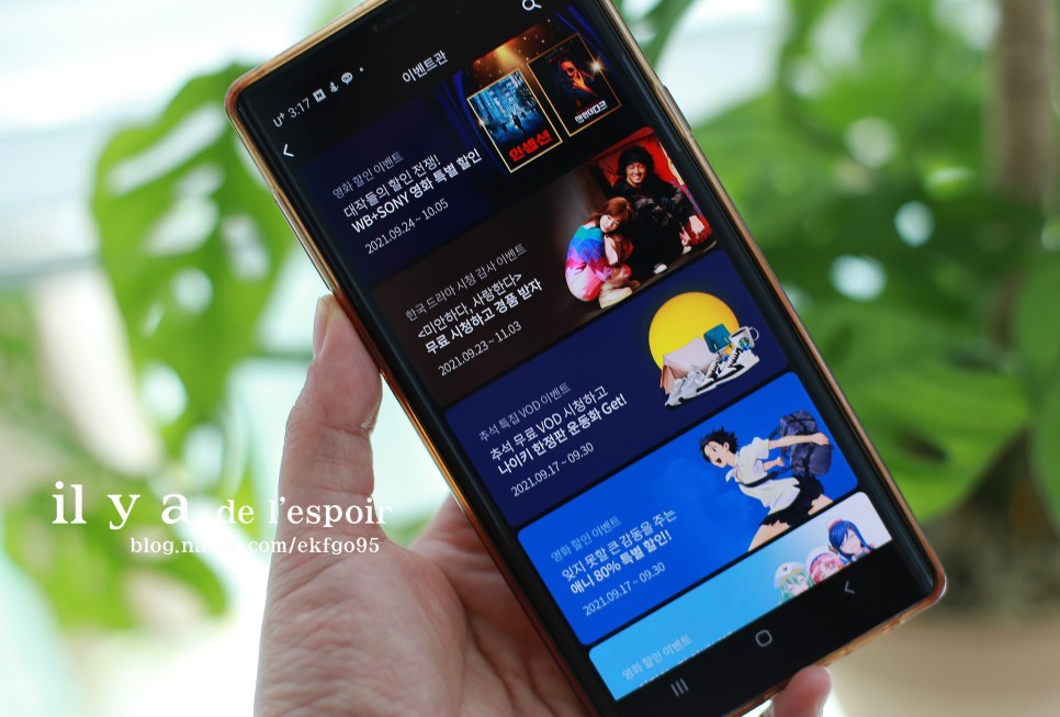 경품행사와 함께 유플러스 모바일 TV 시청구매 할인 등의 행사도 있어 추억 속의 작품이나 최신작을 더욱 편안하게 즐기실 수도 있어요~