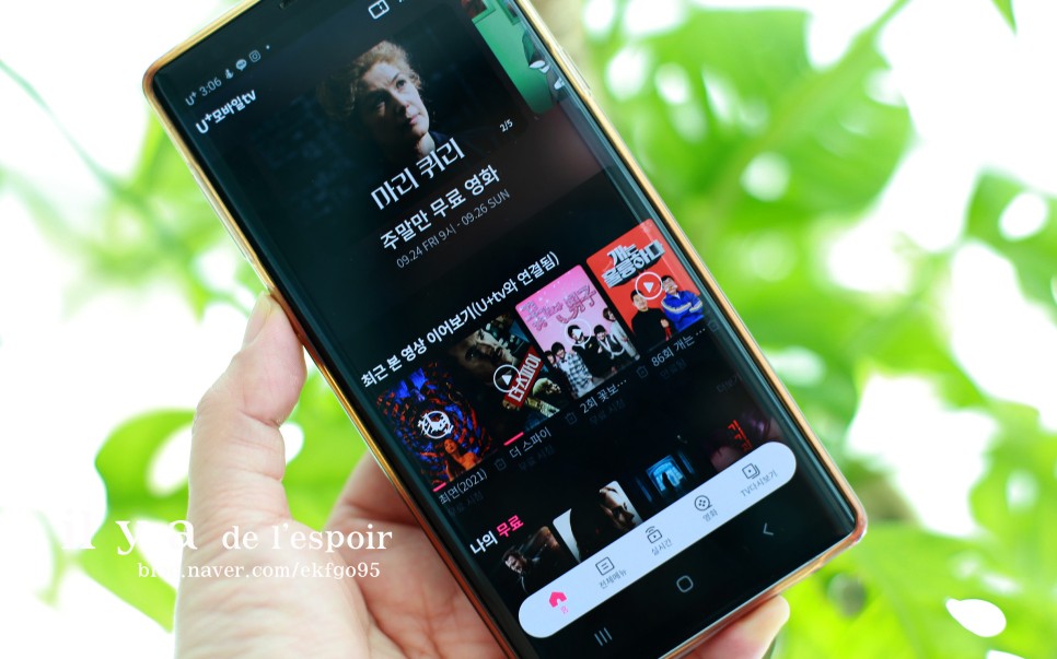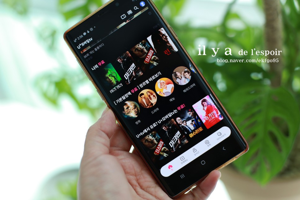 나의 무료, 기본 월 무료, U+TV에서는 유료지만 유플러스 모바일 TV에서는 무료, 최신 영화, 최신 방송 등 깔끔하게 카테고리가 정리되어 있어 긴 이동시간이나 여가시간을 보낼 수 있습니다.