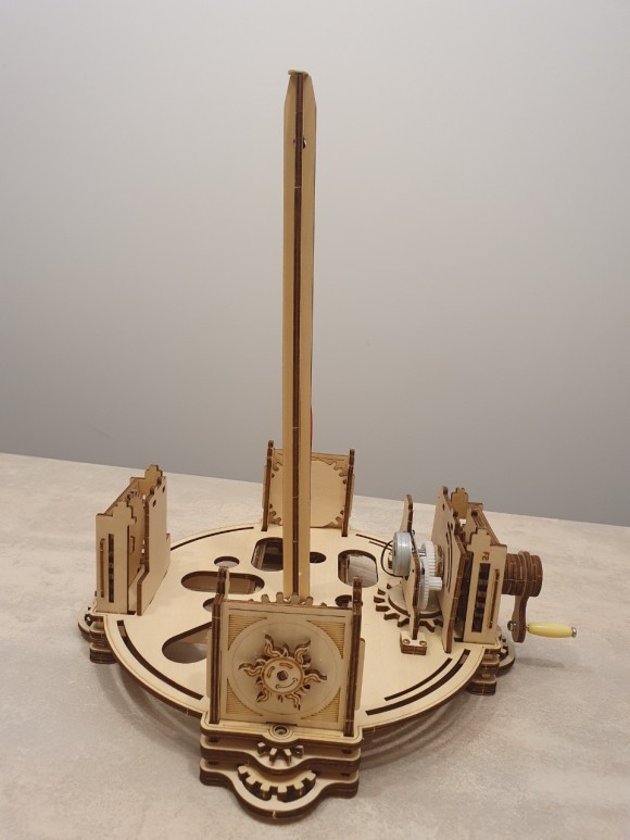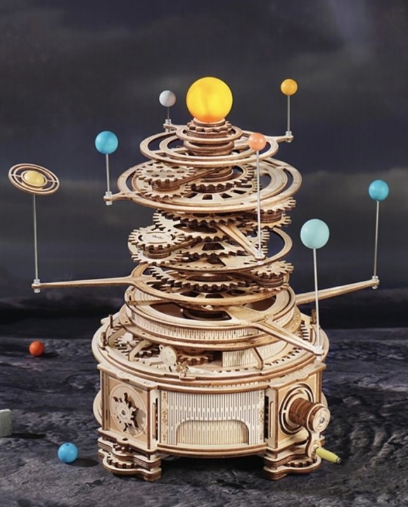 아름답게 표현된 하나의 태양과 8개의 행성 빙글빙글~ 손잡이를 돌리면 톱니가 맞물려 작동합니다 작동과 함께 태양 주변을 도는 행성들
