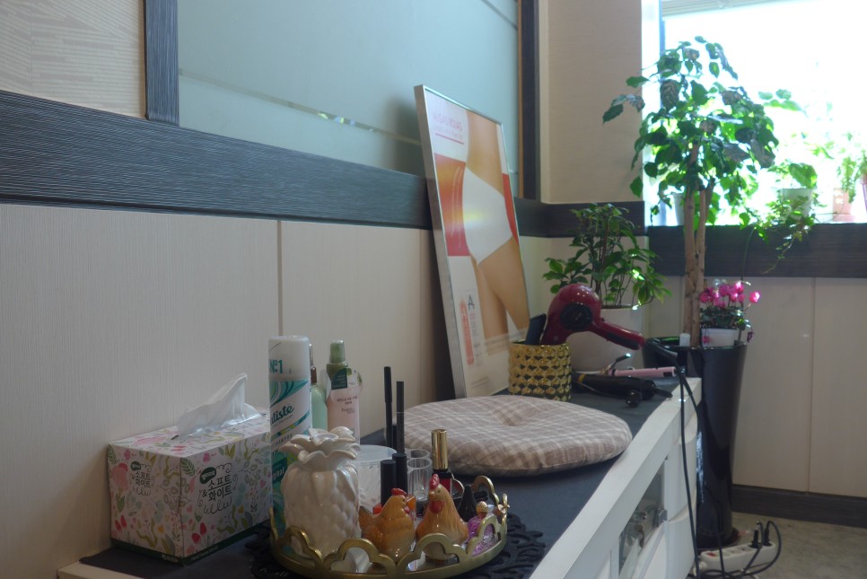 간단하게 메이크업과 헤어 정리를 할 수 있는 공간이 마련되어 있다.