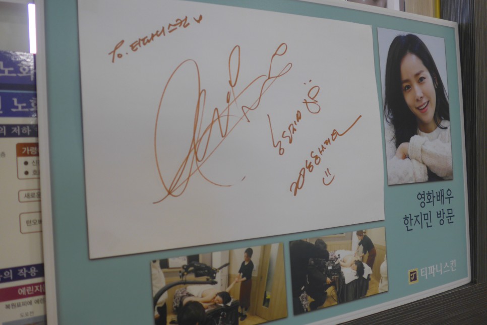 한지민이 방문해서 케어 받았다. 마사지를 받고 있는 사진도 있고.