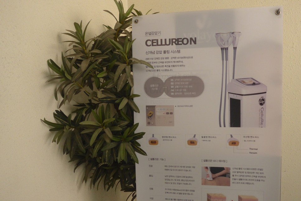 셀룰리온은 셀룰라이트 청소기로 불리는데 진공과 진동으로 셀룰라이트를 파괴하는 기계다.