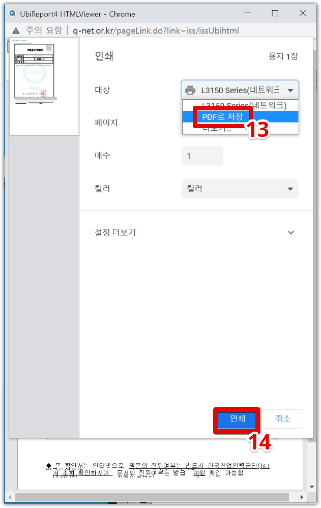 (15) 아래와 같이 pdf가 된 확인서가 다운로드 되었습니다.