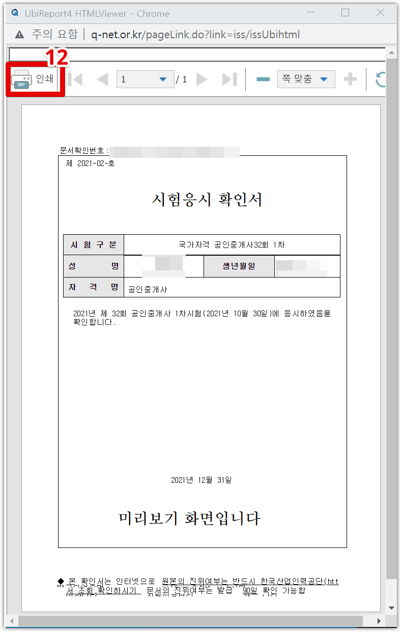 (12) 인쇄 버튼을 클릭합니다.