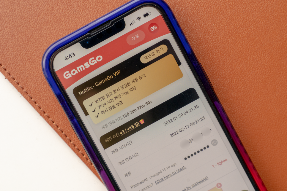 단, 넷플릭스 계정쉐어에서 파티를 모집할 경우 계정주가 비밀번호를 갑자기 변경하는 상황이 자주 발생하기 때문에 주의가 필요한데, 계정 공유 중개 플랫폼을 이용하는 것이 좋다. 이번에 이용해 본 GamsGO(게무스고)도 마찬가지다.