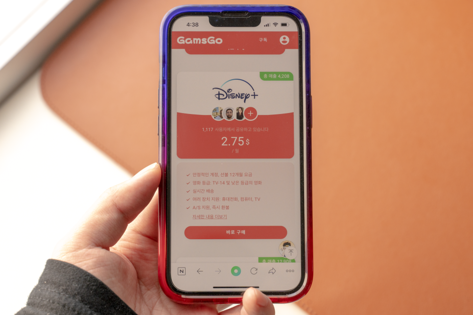 GamsGO는 넷플릭스 프리미엄, 디즈니 플러스 뿐만 아니라 스포티파이, 유튜브 프리미엄, HBOMAX, 타이달 등의 스트리밍 서비스를 저렴하게 이용할 수 있는 플랫폼으로 유럽(스페인, 프랑스 등), 아시아(중국, 동남아 등)를 포함한 12만 명 이상의 이용자 수를 보유하고 있다.