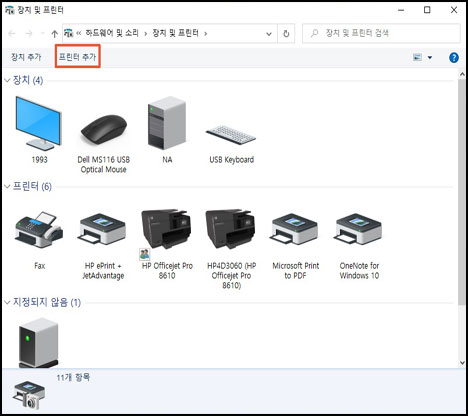 HP 프린터 접속 드라이버를 인스톨 할 필요가 있기 때문에, 프린터를 클릭합니다.