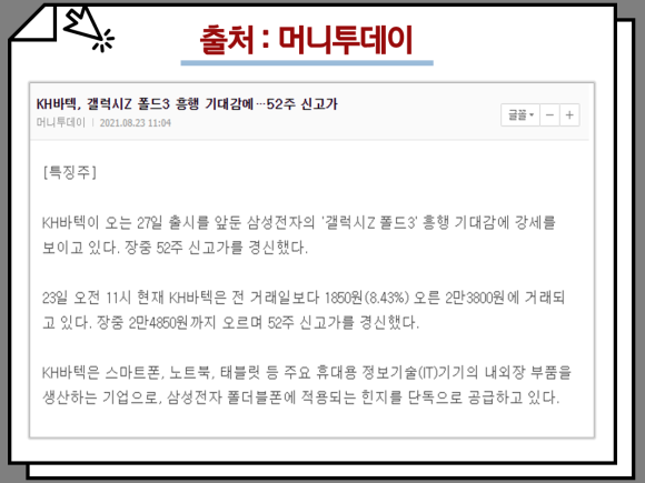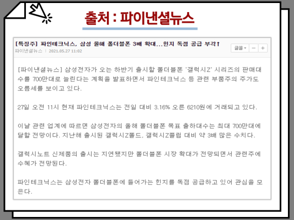 마찬가지로 Z플립의 흥행은 성공적이었고 관련주로서도 그 혜택을 톡톡히 누리고 있습니다.
