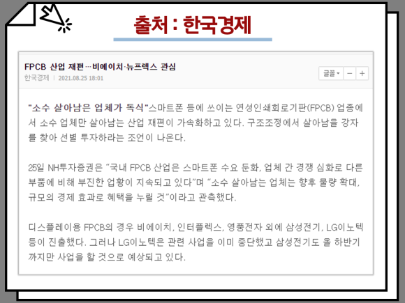 폴더블폰에 필수적인 FPCB는 진입장벽이 높은 산업으로 미래 전망도 긍정적입니다.