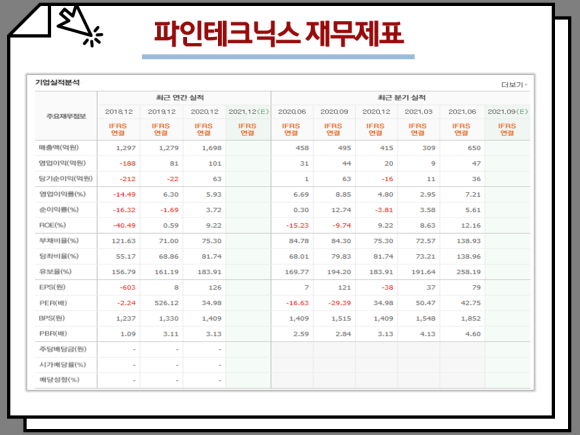 파인테크닉스의 실적을 보면 2020년 매출액은 1,698억원, 영업이익은 101억원으로 증가세를 보이고 있습니다.