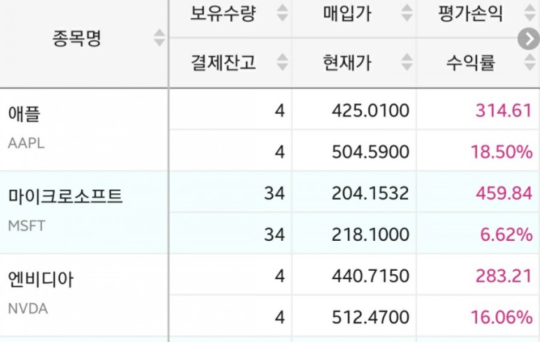애플, 마소 다음으로 가장 최근에 들어왔음에도 갓풀급에서 신고점을 찍으며 달려주는 엔비디아. 너는 도대체…;;)