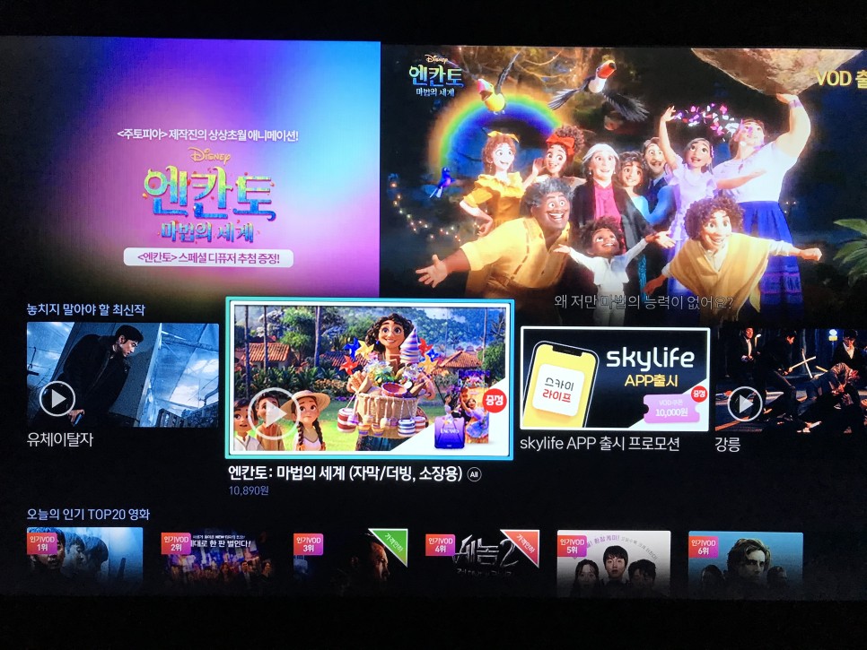 kt skylifet v화질이 선명하고 예쁘게 나오고 vod 최신 영화 컨텐츠 프로그램도 볼 것이 많아서 좋습니다.넷플릭스, 유튜브, 웨이브, 와처, 디즈니플러스 등등 다 잘 보고 있어요리모콘의 넷플릭스 버튼이 있으므로 누르면 바로 접속이 가능하기 때문에 편리합니다.